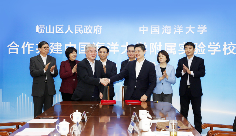 崂山区人民政府、中国海洋大学合作共建中国海洋大学附属实验学校签约仪式在崂山校区举行。