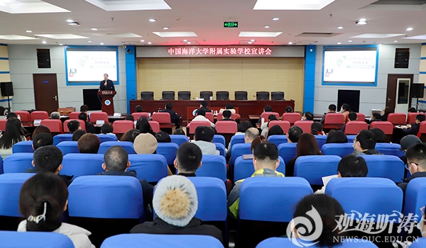 在中国海洋大学、北京师范大学、崂山区的共同努力下,附属实验学校开学筹备如火如荼。为了倾听和回应学生家长和社会关切,2月28日下午,中国海洋大学工会、妇委会、附属学校筹建工作办公室邀请海大附校筹备工作组组长王新刚召开宣讲会,200多位学生家长参加活动。工会主席毕芳芳出席宣讲会。会议由附属学校筹建工作办公室主任李春雷主持。