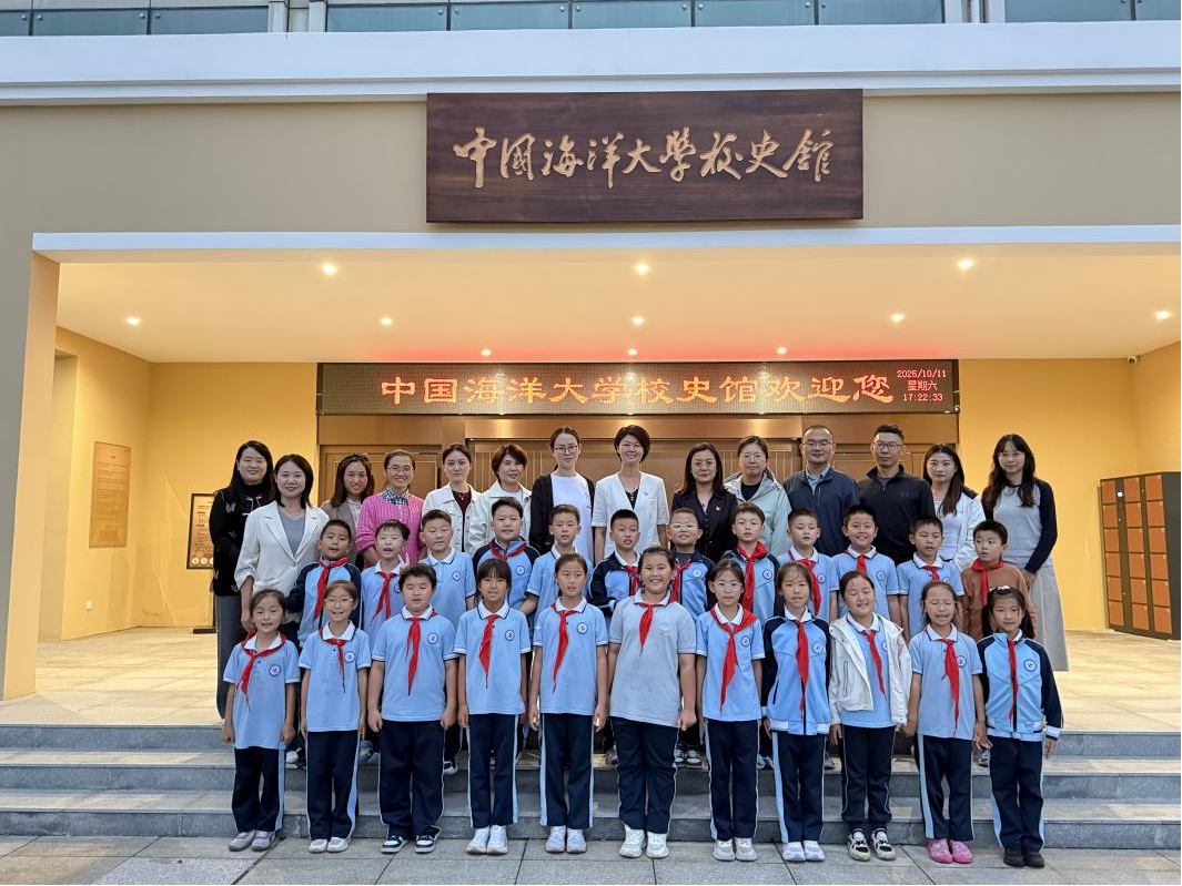 10月11日下午,中国海洋大学附属学校管理处组织附属实验学校2025年新任教师及小学生代表走进中国海洋大学,参观“抗战烽火中的中国海洋大学——纪念中国人民抗日战争暨世界反法西斯战争胜利80周年专题展”和校史馆,开展入职校史校情专题培训。