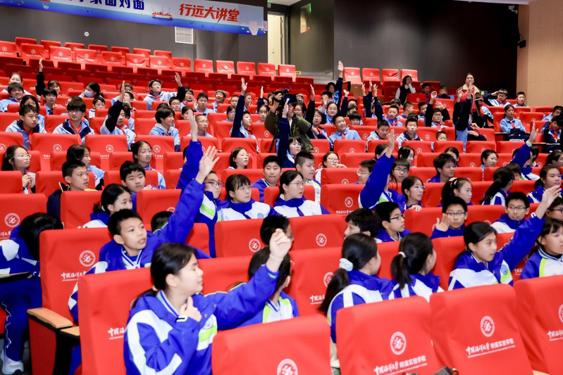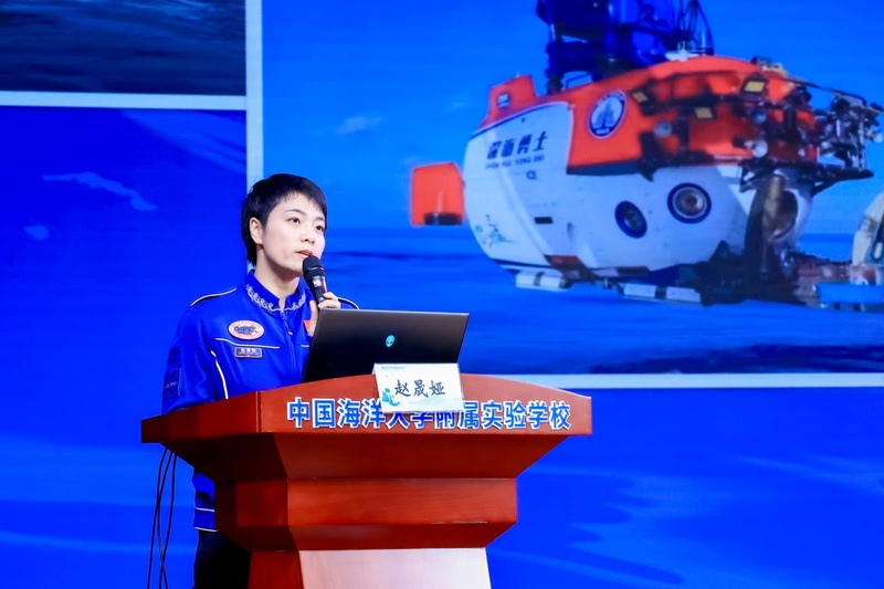 在互动环节中,中国海洋大学附属实验学校、中国海洋大学附属中学(山东省青岛第三十九中学)和县中托管学校(河南省栾川县第一高级中学、湖北省大悟县第一中学)的学生们踊跃提问,围绕深海环境、潜航装备、心理素质等话题展开交流。赵晟娅耐心作答,并为提问的学生在签名簿上亲笔留言,勉励大家保持好奇心与探索精神,把“深海梦”化为“强国志”。