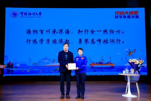 国家深海基地管理中心“蛟龙”号载人潜水器潜航员、我国首批女潜航员赵晟娅应邀作题为《挺进深海,逐梦蔚蓝——我与“蛟龙”探海的故事》的专题讲座。赵晟娅以亲身经历讲述了从南海到太平洋、从印度洋到北极的载人深潜历程,回顾了“蛟龙”号深潜任务的难忘瞬间,分享了我国首次北极下潜和全球首次极区有人/无人潜水器协同作业的经历与感悟,深刻阐释了潜航员在深海极地环境中的坚守与担当,展现了我国深海科技工作者“敢下、敢闯、敢为人先”的探索精神。